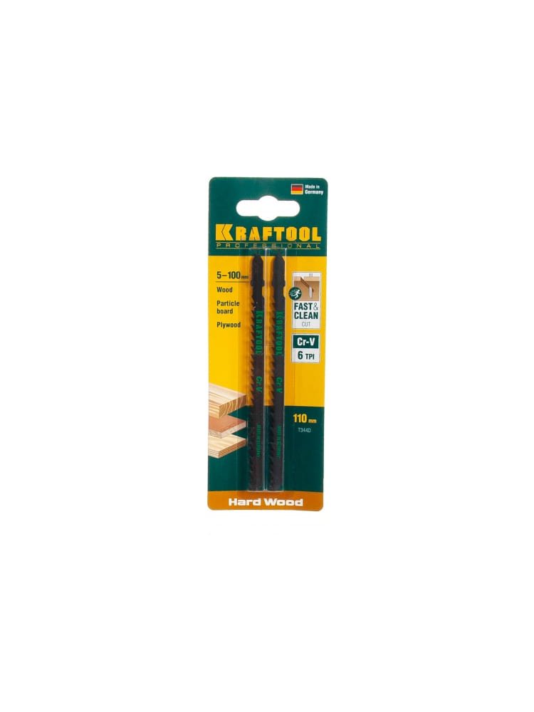 Пилки для лобзика по дереву KRAFTOOL T344D, быстрый рез, 110мм, 2шт.