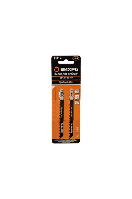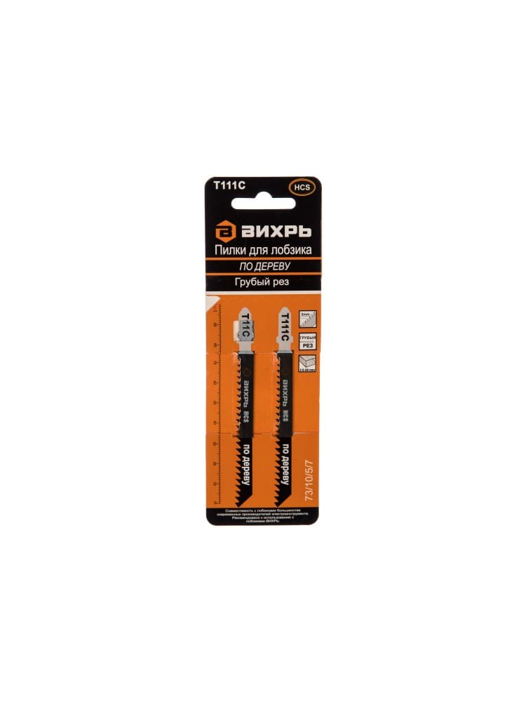 Пилки для лобзика ВИХРЬ Т111C по дереву,грубый рез 100х75мм, 2шт
