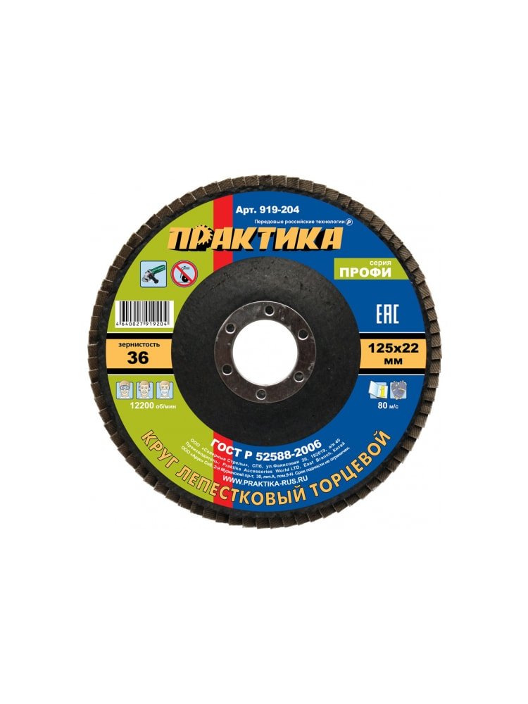 Круг лепестковый шлифовальный ПРАКТИКА "Профи" 125*22 мм (Р36)