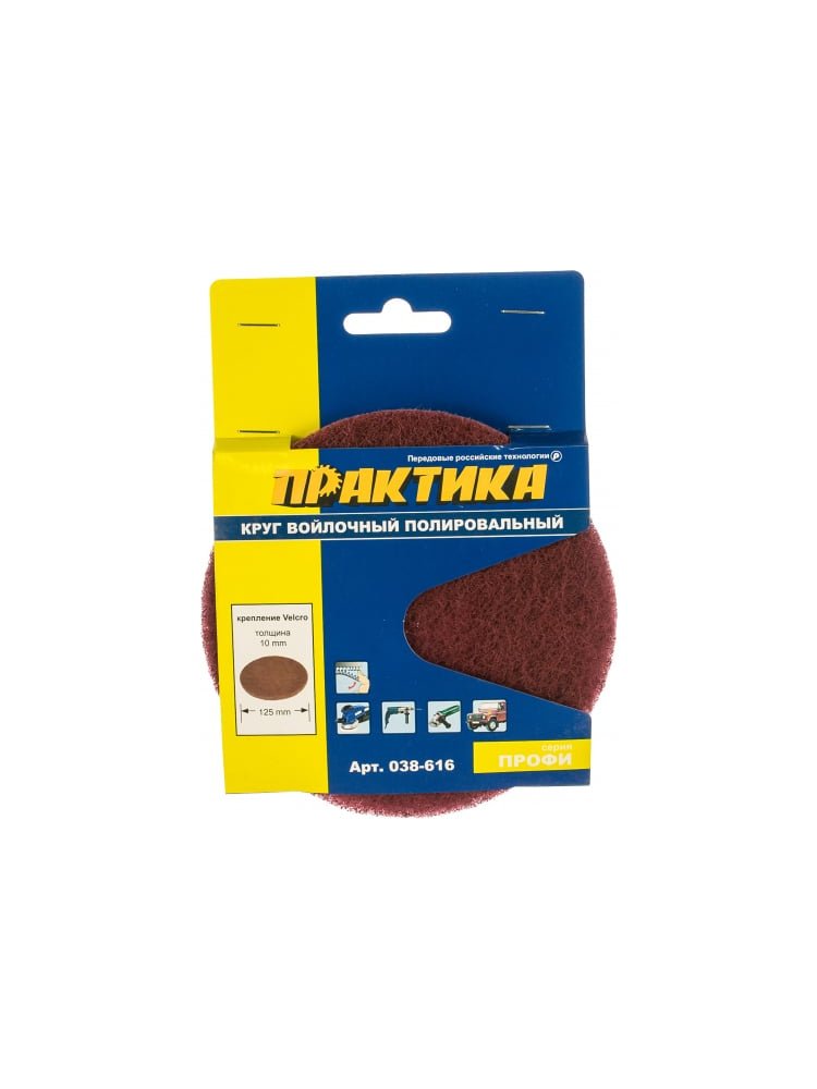 Круг войлочный полировальный ПРАКТИКА 125 мм, абразивный, крепление VELCRO