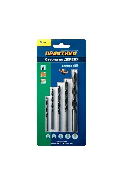 Набор сверл по дереву ПРАКТИКА "Сделай сам", 5 шт, 3,4,5,6,8 мм в Солнечный