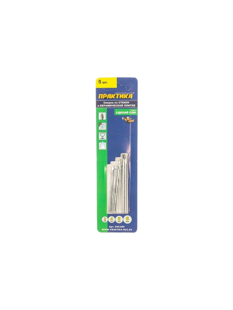 Набор сверл по стеклу и керамике ПРАКТИКА "Сделай сам", 4 шт, 3,4,5,6 мм