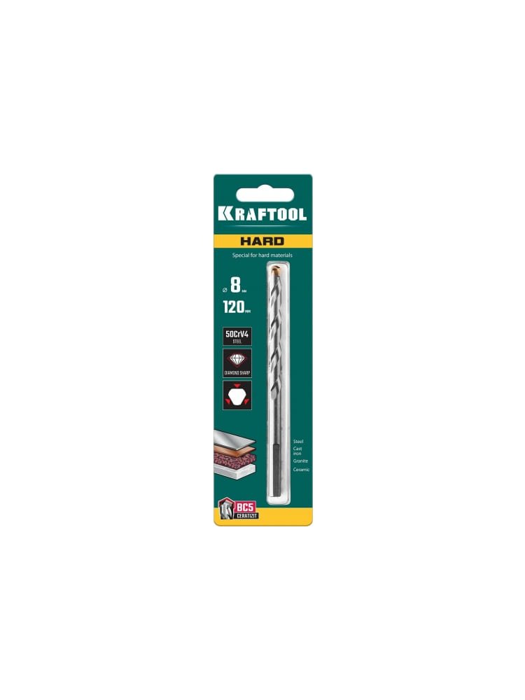 Сверло по твёрдым материалам KRAFTOOL 8,0*120мм в Солнечный