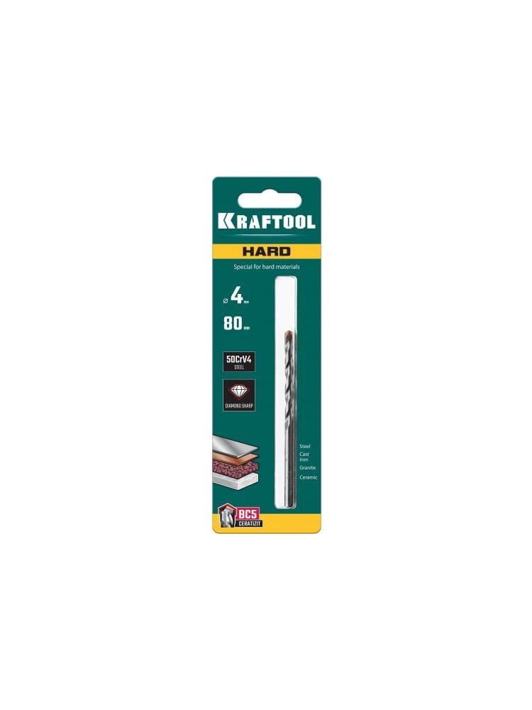 Эффективное сверление твёрдых материалов требует надёжного и износостойкого инструмента. Сверло диаметром 4,0 мм и длиной 80 мм создано для работы с керамикой, кафелем, стеклом, гранитом и фарфором – идеально подходит для монтажных и отделочных работ внутри и снаружи помещений.