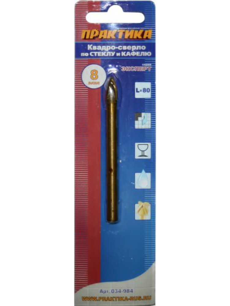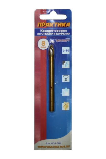 Сверло по стеклу ПРАКТИКА 8х80 мм Квадро"Эксперт"