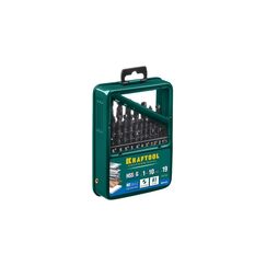 Особопрочные сверла по металлу 29651-H10 производителя KRAFTOOL. Широко используются в шуруповертах,дрелях и перфораторах,а также в станках сверлильных для засверливания предметов из металла и стали. Материал,из которого сделано сверло - быстрорежущая сталь HSS-G,М2(S6-5-2).В комплект входят сверла: 10 шт. Набор из 10 сверл 1-10 мм из стали HSS с защитным покрытием для точного сверления металла, пластика и дерева; удобный кейс в комплекте.