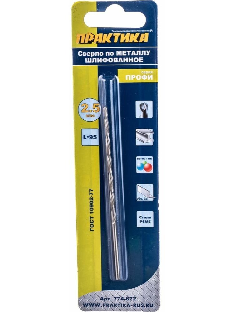 Сверло по металлу ПРАКТИКА удлиненное 2,5*95мм в Солнечный