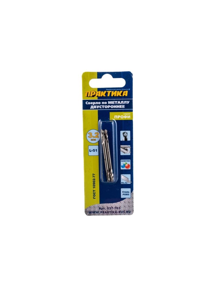Сверло по металлу двустроннее ПРАКТИКА 3.2*51 мм, P6M5, 2 шт