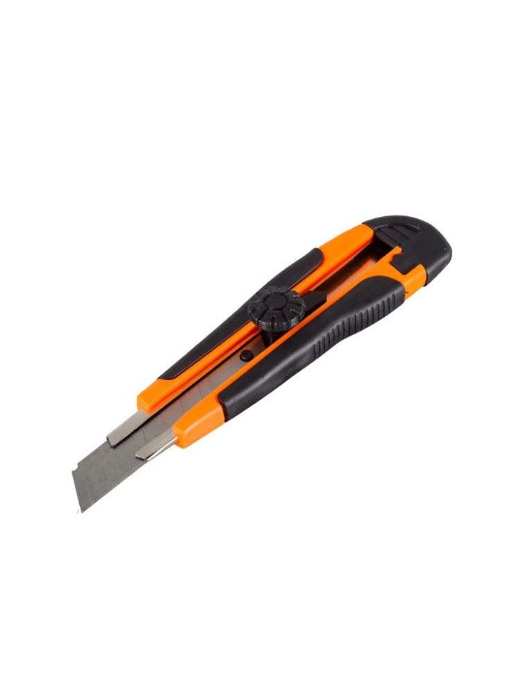 Идеальное решение для точных резов — режущий инструмент с фиксатором, который обеспечивает уверенную и безопасную работу в строительстве, ремонте и отделке. Компактный нож с выдвижным лезвием 18 мм идеально подходит для разрезания линолеума, обоев, картона, плотной упаковки и других материалов.