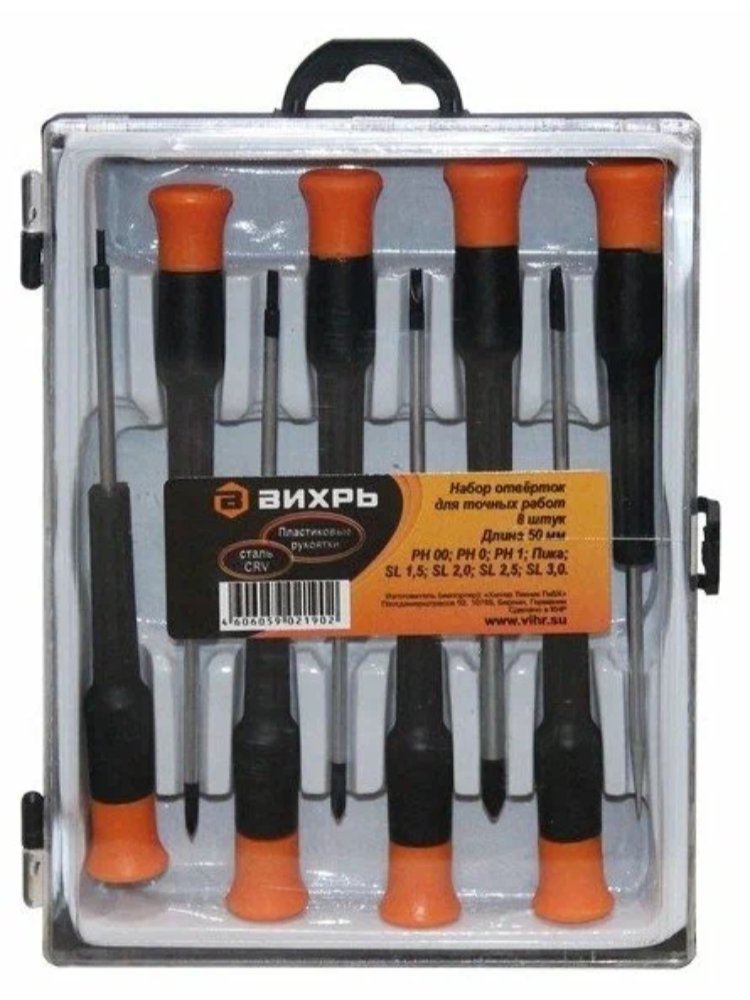 Идеальное решение для ювелирных и ремонтных работ: набор из 8 отвёрток для точных работ поможет аккуратно и быстро справиться даже с самыми миниатюрными деталями электроники, бытовой техники, часов, мобильных устройств и оптики.