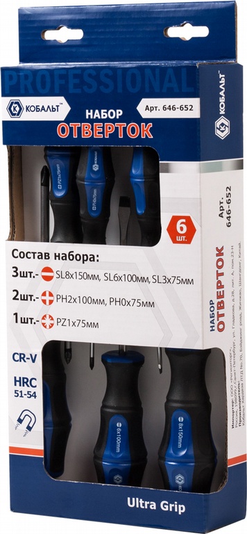 Набор отверток КОБАЛЬТ предназначен для монтажа резьбовых соединений. Материал рабочей части изделий выполнен из хром-ванадиевой стали, которая обеспечивает высокую прочность и стойкость при работе. Инструменты оснащены магнитным наконечником для уверенной работы с крепежом. Изгибы рукояток обеспечивают комфорт во время работы.