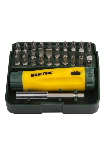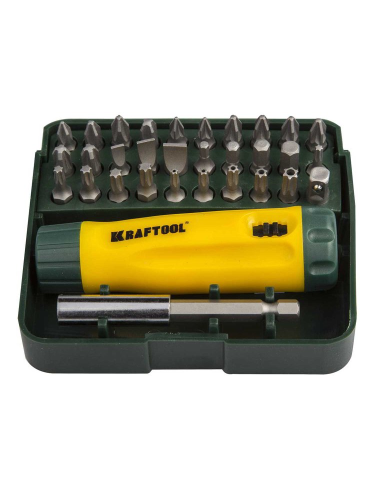 Отвертка KRAFTOOL реверс.с бит и ад.(набор 32пред)