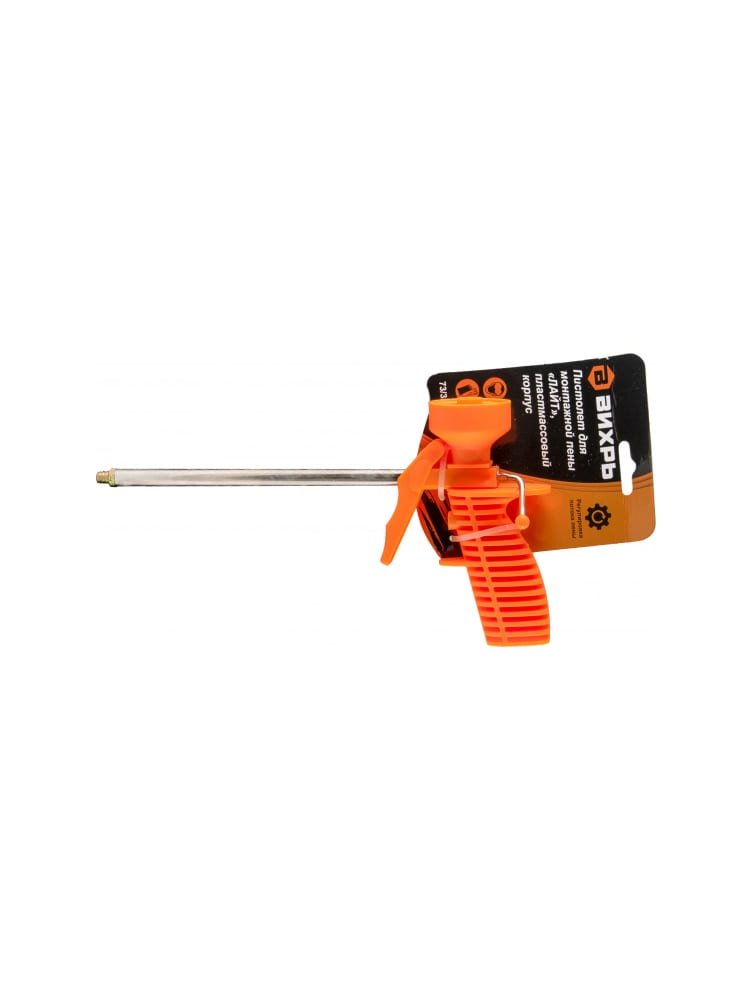 Пистолет для монтажной пены Вихрь ЛАЙТ, пластмассовый корпус идеально подходит для заполнения пенной пустот при установке окон, дверей, кровли и прочих строительных конструкций, для работы в труднодоступных местах. Лёгкий и долговечный пистолет для монтажной пены с точной регулировкой подачи, алюминиевым корпусом и удобной рукояткой для комфортной работы.