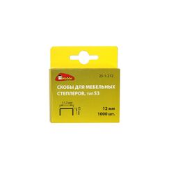 Скобы тип 53 Miles N3-12-D предназначены для степлеров MiLES TP-5525, TP-5560, TP-5561, TS-5580, TS-5592, TS-5595, TP-6001, TA-5596, TS-5585K, TA-5597, TPS-5550, TS-5552. Применяются для скрепления между собой различных материалов. Скобы изготовлены из среднеуглеродистой стали, заострены и оцинкованы. Количество в упаковке – 1000 шт. Оцинкованные скобы тип 53, 12 мм, 1000 шт. для степлеров: устойчивы к коррозии, подходят для дерева, отделки, обивки и установки изоляции.