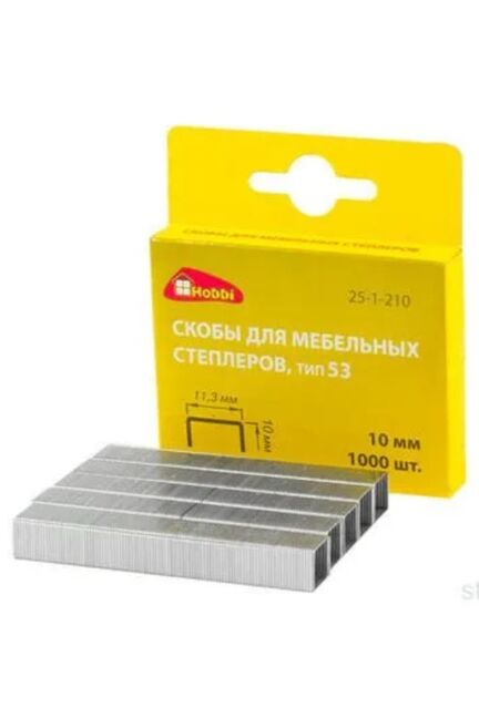 Идеальный выбор для точного и надежного крепления: оцинкованные скобы длиной 10 мм из прочной стали подходят для работы с мебельными, строительными и отделочными материалами. Используются в степлерах при фиксации тканей, картонов, изоляции, кожи и других материалов на дерево и ДСП. Защищены от коррозии цинковым покрытием – это обеспечивает долговечность крепежа даже при высокой влажности.