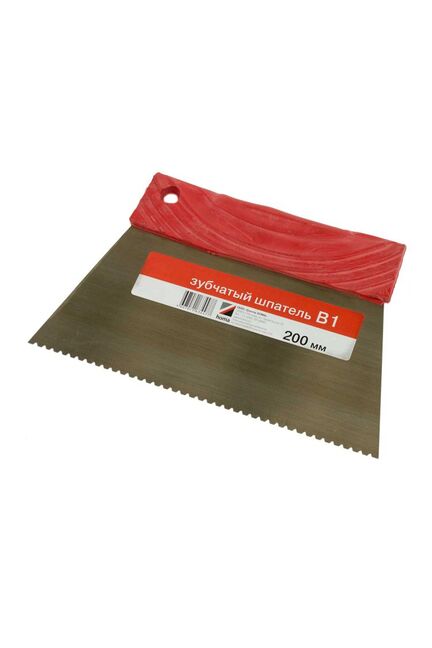 Предназначен для нанесения клеевых материалов на основание при укладке ПВХ покрытий и ковролина. Обеспечивает равномерное и экономичное нанесение клея. Распределяет клеевой слой необходимой толщины по поверхности. Допускается многократное использование с контактными водно-дисперсионными клеями, одноразовое использование с полиуретановыми клеями. Профессиональный зубчатый шпатель 200 мм B1 для точного распределения клея при укладке плитки и полов. Удобная эргономичная ручка.