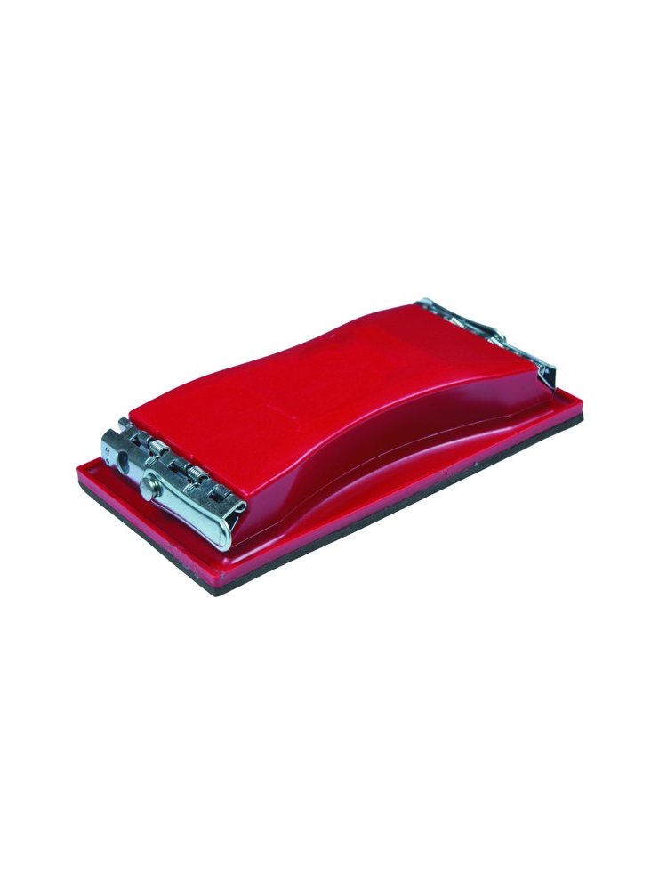 Корпус изготовлен из пластмассы, металлические зажимы из стали. Платформа бруска имеет пористое резиновое покрытие. Абразивный материал фиксируется зажимами. Применение: Для шлифовки и полировки поверхностей различными материалами. Металлическая терка 165×85 мм с прочным фиксатором для быстрой смены шлифовочного полотна – идеальна для работ по выравниванию и обработке поверхностей.