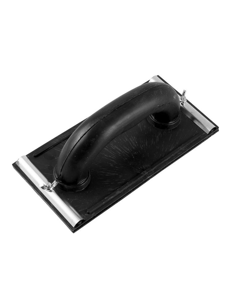Материал: пластиковое основание, накладка из мягкой синтетической резины черного цвета, металлические зажимы для крепления абразивных материалов на терке. Применение: для финишной обработки, шлифовки и полировки различных поверхностей. Подходит для шлифования гипсокартона и шпаклёвки, металлический фиксатор, размер 220×102 мм, быстрая смена шлифлиста, удобная ручка.