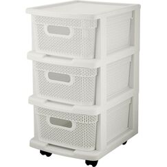 3 вместительных ящика, устойчивая конструкция, влагостойкий материал, стильный дизайн под ротанг, удобно для инструментов и аксессуаров.