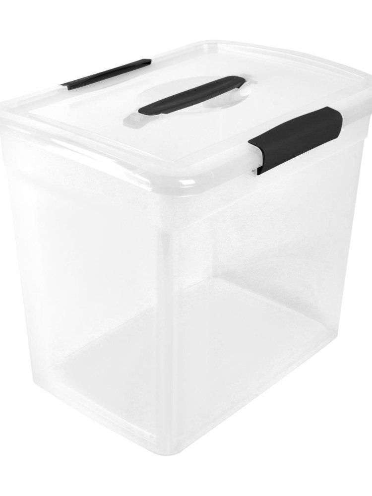 Прочный прозрачный ящик 14 л с надежными защелками и ручкой — удобно для хранения и транспортировки инструментов и материалов.
