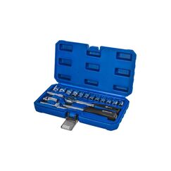 25 предметов: трещотка, головки 1/2" Cr-V, кейс. Прочность, широкий спектр применения, компактное хранение, для авто и дома.