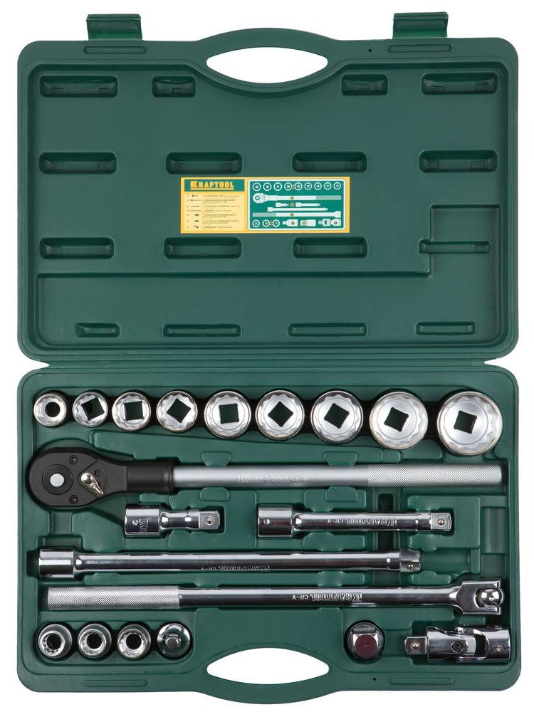 Профессиональный инструмент. Обладает высоким ресурсом даже при интенсивных работах. Применяется для работ с крепежом. 3/4" Профессиональный набор головок 20 пр. для грузовой и строительной техники, износостойкая сталь, размеры 10-50 мм, прочный кейс.