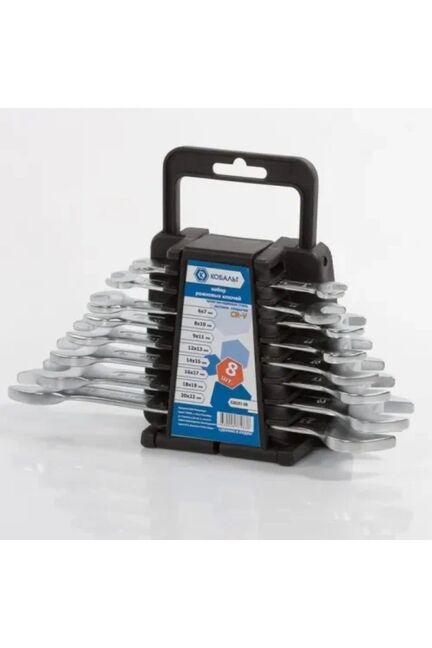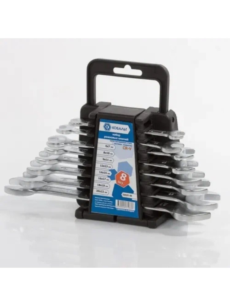 - В комплекте 8 ключей популярных размеров — 6x7, 8x9, 10x11, 12x13, 14x15, 16x17, 18x19, 20x22 мм