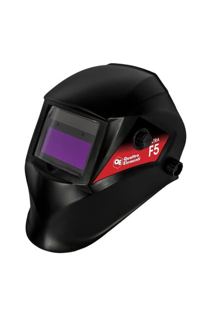 Маска сварочная ULTRA F5 DIN 9-13, Хамелеон, коробка QUATTRO ELEMENTI 908-504 предназначена для индивидуальной защиты глаз, лица и шеи от ожогов, ультрафиолетового излучения, искр, инфракрасного света и высоких температур при выполнении определённых видов сварки. Видимая область 93x43 mm, DIN 13, 3 рег-ки Маска с автозатемнением 9–13 DIN, смотровое окно 98х43 мм, 4 датчика, питание от солнечной батареи и аккумулятора, для любых видов сварки.