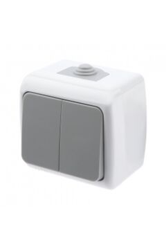 2-клавишный выключатель 10А, степень защиты IP54, устойчив к влаге и пыли, подходит для наружной установки в сложных условиях.