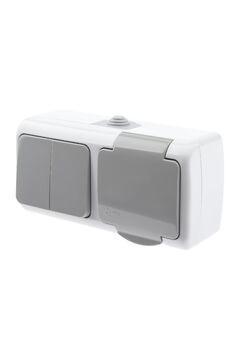 Высота: 5 см; Глубина: 4 см; Ширина: 26 см; Гарантия 2 года; Количество выключателей: 1; Количество клавиш:2; Количество постов:2; Количество розеток:2. Блок с розеткой и 2-клавишным выключателем 10А IP54 для влажных зон. Надёжная защита, удобство управления и долговечность.