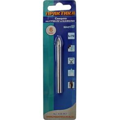 КВАДРО-сверла по стеклу. Серия "Эксперт". Идеальный инструмент для профессионального применения. Твердосплавная напайка специальной формы с алмазной заточкой для длительного использования. Четыре режущие кромки, (патент № ZL 01311605.3) позволяют производить засверливание даже в криволинейной поверх- ности, а также получить идеально ровные кромки отверстия. Для сверления отверстий в стекле, фарфоре, облицовочной керамической плитке. Рекомендуемая частота оборотов 400-1000 об/мин в зависимости от диаметра. При сверлении использовать охлаждение водой. Работать в неударном режиме. Не для керамогранита. Сверло для аккуратного сверления стекла и керамики, усиленная кромка, 6х72 мм, минимальный риск сколов и трещин, высокое качество.