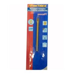 КВАДРО-сверла по стеклу. Серия "Эксперт". Идеальный инструмент для профессионального применения. Твердосплавная напайка специальной формы с алмазной заточкой для длительного использования. Четыре режущие кромки, (патент № ZL 01311605.3) позволяют производить засверливание даже в криволинейной поверх- ности, а также получить идеально ровные кромки отверстия. Для сверления отверстий в стекле, фарфоре, облицовочной керамической плитке. Рекомендуемая частота оборотов 400-1000 об/мин в зависимости от диаметра. При сверлении использовать охлаждение водой. Работать в неударном режиме. Не для керамогранита. Сверло 5х67 мм для точного сверления стекла и кафеля без сколов, усиленный наконечник, подходит для дрелей и шуруповертов.