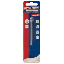 КВАДРО-сверла по стеклу. Серия "Эксперт". Идеальный инструмент для профессионального применения. Твердосплавная напайка специальной формы с алмазной заточкой для длительного использования. Четыре режущие кромки, (патент № ZL 01311605.3) позволяют производить засверливание даже в криволинейной поверх- ности, а также получить идеально ровные кромки отверстия. Для сверления отверстий в стекле, фарфоре, облицовочной керамической плитке. Рекомендуемая частота оборотов 400-1000 об/мин в зависимости от диаметра. При сверлении использовать охлаждение водой. Работать в неударном режиме. Не для керамогранита. Усиленное сверло 4х60 мм для точного и аккуратного сверления стекла, кафеля и керамогранита без сколов. Прочный твердосплавный наконечник.
