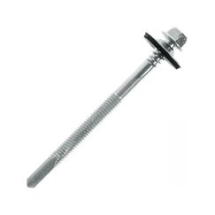Стальные оцинкованные саморезы с шестигранной головкой и сверловидным наконечником, укомплектованные шайбой и резиновой прокладкой, для крепления фасадных слоистых плит к металлическим несущим конструкциям. Оцинкованные саморезы 5,5/6,3×240 мм. Для прочного крепления сэндвич-панелей, устойчивы к коррозии, подходят для металло- и деревянных конструкций.