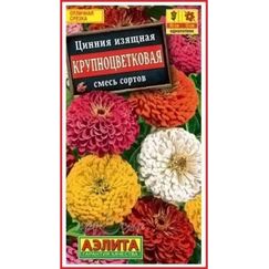 Яркая смесь крупных цинний для клумб и бордюров, устойчива к засухе, цветёт с июня до заморозков, легко выращивается, подходит для срезки.