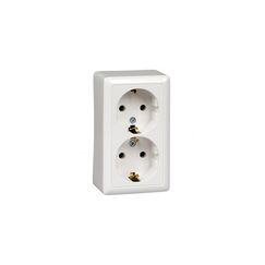 Накладная розетка на два поста для внутренней электропроводки, 16А, эффективный монтаж, прочный корпус, защита IP20, современный дизайн.