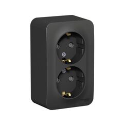 Двойная розетка с заземлением 16А, монтаж О/У, изолирующая пластина, стиль антрацит. Безопасная и удобная для бытовых и профессиональных помещений.