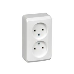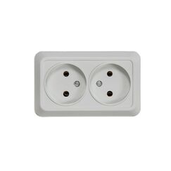 Двухместная розетка для открытого монтажа 16А без заземления, устойчива к износу, проста в установке, подходит для дома и офиса.