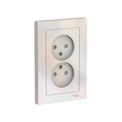 Двойная розетка без заземления с защитными шторками, стильный цвет жемчуг, моноблок — безопасность, эстетика и лёгкая установка для любого помещения.