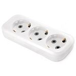 Номинальное напряжение: 250 В; Частота: 50 Гц; Номинальный ток: 10 А; Материал корпуса: АБС-пластик; Климатическое исполнение: УХЛ-3; Степень защиты от влаги и пыли: IP-20; Цвет: белый. Колодка на 3 гнезда, без заземления, выдерживает ток до 10А, идеальна для подключения трёх приборов на стройке, в мастерской или дома.
