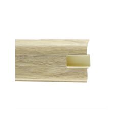 Утонченный и высокий профиль (58 мм) с острыми краями. Благодаря съёмной панели монтаж электрических проводов, покраска стен, оклеивание обоями возможны без демонтажа профилей. Конструкция позволяет монтировать и демонтировать плинтус без использования инструментов. Существует возможность размещения большого количества проводов, в том числе после монтажа. Специальная двухслойная технология: помимо слоя краски, дополнительно покрывается специальным лаком, благодаря чему его покрытие становится однородным, а это дополнительно защищает изделие от разного вида механических повреждений и вредного воздействия лучей УФ. Благодаря эластичному материалу, плинтус идеально прилегает даже к неровностям стен и полов. Плинтус Wimar "Дуб Гроссо" 58 мм, 2,5 м из МДФ. Скрывает стыки, защищает от пыли, легко монтируется, подходит для любых напольных покрытий.