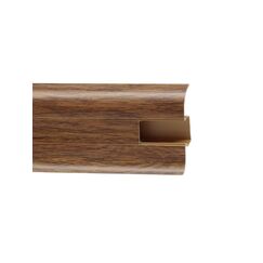 Утонченный и высокий профиль (58 мм) с острыми краями. Благодаря съёмной панели монтаж электрических проводов, покраска стен, оклеивание обоями возможны без демонтажа профилей. Конструкция позволяет монтировать и демонтировать плинтус без использования инструментов. Существует возможность размещения большого количества проводов, в том числе после монтажа. Специальная двухслойная технология: помимо слоя краски, дополнительно покрывается специальным лаком, благодаря чему его покрытие становится однородным, а это дополнительно защищает изделие от разного вида механических повреждений и вредного воздействия лучей УФ. Благодаря эластичному материалу, плинтус идеально прилегает даже к неровностям стен и полов. ПВХ-плинтус 58 мм, 2,5 м, влагостойкий, с кабель-каналом, легко монтируется, устойчив к повреждениям, подходит для любых покрытий пола.