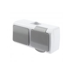 Высота: 5 см; Глубина: 4 см; Ширина: 26 см; Гарантия 2 года; Количество выключателей: 1; Количество клавиш:2; Количество постов:2; Количество розеток:2. Блок с розеткой и 2-клавишным выключателем 10А IP54 для влажных зон. Надёжная защита, удобство управления и долговечность.