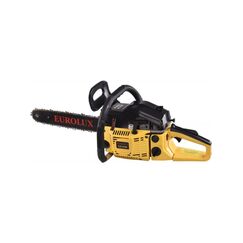 Цепная пила оснащена 2-х тактным двигателем объемом 52 см³, развивающим мощность до 2,8 кВт. ДВС с воздушным охлаждением предотвращает перегрев металлических деталей. Встроенный топливный бак имеет объем 550 мл, что обеспечивает продолжительное время работы без дозаправки. Компактная шина размера 450 мм (18”) со скользящей по ней пильной цепью с шагом 0,325” и количеством звеньев 72 шт образуют режущий аппарат бензопилы, который отлично справляется с задачей распиловки веток или бруса. Цепная пила Eurolux GS-5218 отличается следующими преимуществами: эргономичность и встроенная антивибрационная система позволяют сделать процесс работы с бензопилой максимально комфортным; безопасность – тормоз цепи блокирует движение ведущей звездочки двигателя при отскоке инструмента во время работы; автоматическая смазка цепи. Бензопила - быстрая распиловка, двигатель 3,0 л.с., шина 45 см, антивибрация и автоматическая смазка цепи для надёжной и комфортной работы.