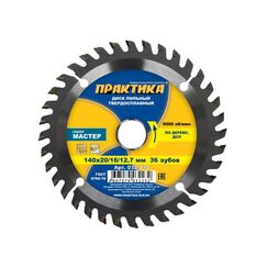 Пильные диски по дереву и ДСП. ГОСТ 9769-79. Серия "Мастер". Высококачественные пильные диски для ручных дисковых пил и станков. Твердость тела HRC 45-46, напаек из карбида вольфрама (сплав ВК8) HRC. 90-93. Угол атаки зуба + 15°. Диск 140 мм, 36T, универсальные посадочные 20/16/12,7 мм, для точной резки дерева и ДСП без сколов. Прочность и долговечность.