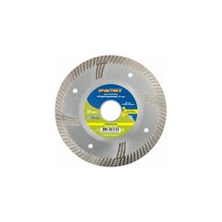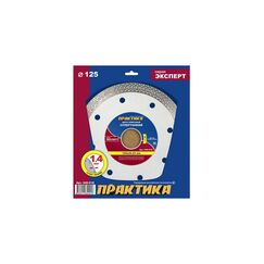 Серия «Эксперт». Тип TURBO. Сегмент 10 мм. ГОСТ 10110-87. Супертонкие. Специализированные диски для резки керамического гранита, твердой и мягкой керамической плитки, плит из искусственного и натурального твердого камня. Предназначены для установки на ручные угловые шлифовальные машины и стационарные плиткорезные станки. Высокая концентрация алмазов мелкой фракции в сегменте и минимально возможная толщина диска обеспечивают высокую скорость реза и идеальную чистоту кромок. Тело диска имеет усиление в районе посадочного отверстия для повышения жесткости и снижения вибраций. Диски серии «Эксперт» предназначены для профессионального применения и рекомендованы для большого объема работ. Для уменьшения пылеобразования и увеличении ресурса диска рекомендуется использовать охлаждение водой. Тонкий диск 125х22 мм для точного реза плитки, керамики и керамогранита с минимальными сколами, универсален для болгарки.