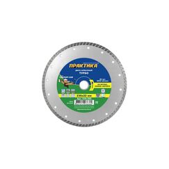 Серия «Мастер». Тип TURBO. Сегмент 10 мм. ГОСТ 10110-87. Алмазные диски для широкого спектра строительных материалов: кирпич, бетон, искусственный и натуральный камень. Очень высокая скорость резания. Для ручного электроинструмента. Способны разрезать тонкую арматуру в бетоне. Не для абразивных материалов. Сухой рез. Охлаждение водой увеличивает ресурс диска. Турбированный алмазный диск 230x22 мм: идеален для ровной и быстрой резки бетона, кирпича и керамики без сколов и перегрева.