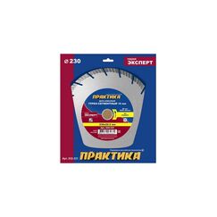 Серия «Эксперт». Тип TURBO-Сегмент. Сегмент 10мм. ГОСТ 10110-87. Специализированные диски для профессионального применения по бетону, армированному бетону, искусственному и натуральному камню. Лучшая серия для сложных работ по материалам неоднородного состава. Для большого объема работ. Не рекомендован для абразивных материалов. Сухой рез. Охлаждение водой увеличивает ресурс диска. Для быстрой и чистой резки бетона и камня. Диаметр 230 мм, турбосегмент. Высокий ресурс, подходит для угловых шлифмашин.