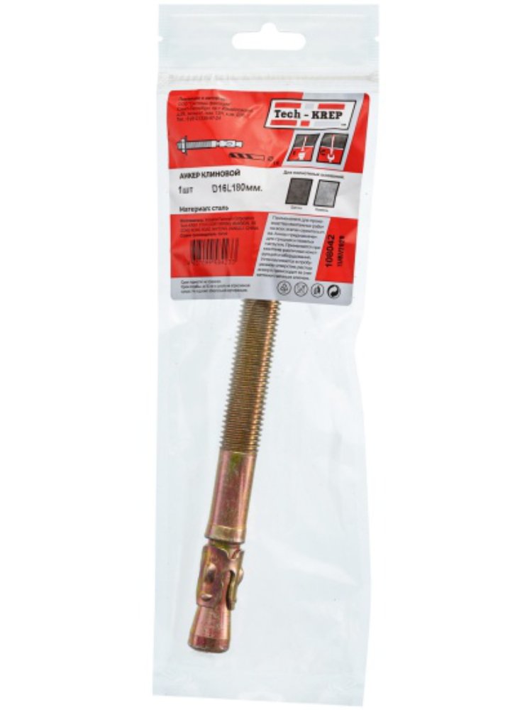 Анкер клиновой 16х180 мм от Tech-Krep представляет собой надежный крепежный элемент, предназначенный для создания прочных соединений в бетоне и других твердых материалах. Изготовлен из высококачественной стали с антикоррозийным покрытием, что обеспечивает долговечность и устойчивость к внешним воздействиям. Конструкция анкера включает клиновой механизм, который при затягивании гайки расширяется, обеспечивая максимальную фиксацию. Подходит для монтажа тяжелых конструкций, где требуется высокая степень надежности. Упаковка содержит 1 штуку, что удобно для точечного использования. Длина изделия 180 мм, диаметр 16 мм, что делает его универсальным для многих строительных задач.