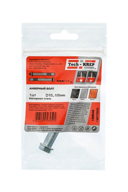 Анкерный болт 10х100 (1 шт) - пакет Tech-Krep в Солнечный
